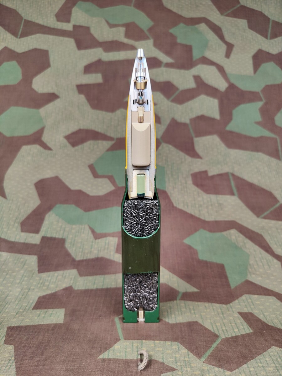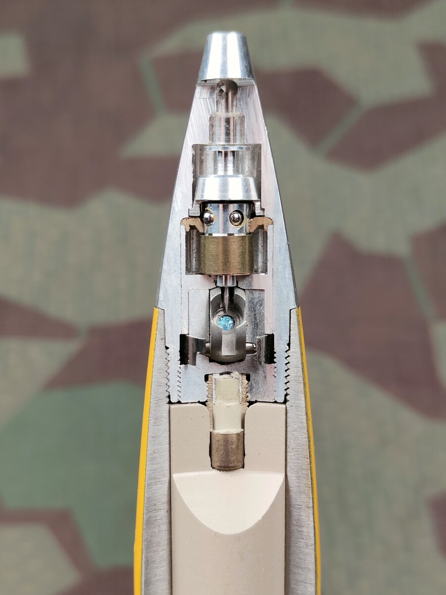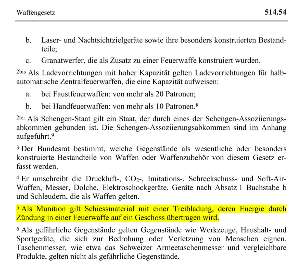 Das Schnittmodell hat keine Treibladung und ist per Definition keine Munition. Beachten Sie das letzte Foto (Ausschnitt aus den schweizerischen Waffengesetz).