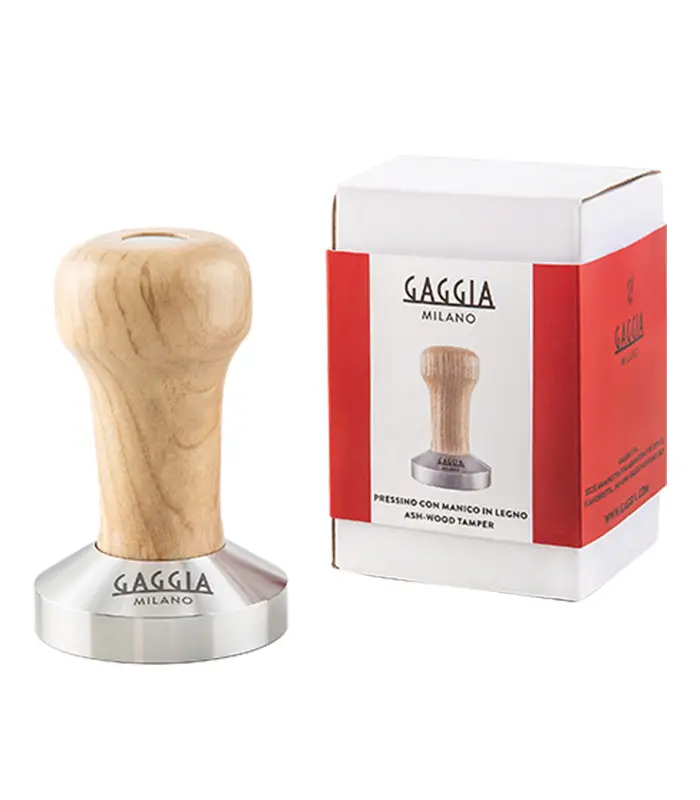 Tamper aus Edelstahl mit Griff aus Eschenholz. Durchmesser: 58 mm. Mit Gaggia-Logo und ergonomischem Design. Dank des bequemen Holzgriffs einfach zu handhaben.[/vc_column_text][vc_column_text css=”” woodmart_inline=”no” text_larger=”no”]DATENBLATT