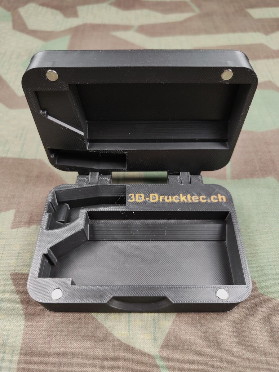 Der Behälter wurde spezifisch auf die Abmessungen des Verschlusses des Sturmgewehr 90 entwickelt und bietet eine optimale Passform für den sicheren Transport und die Lagerung.